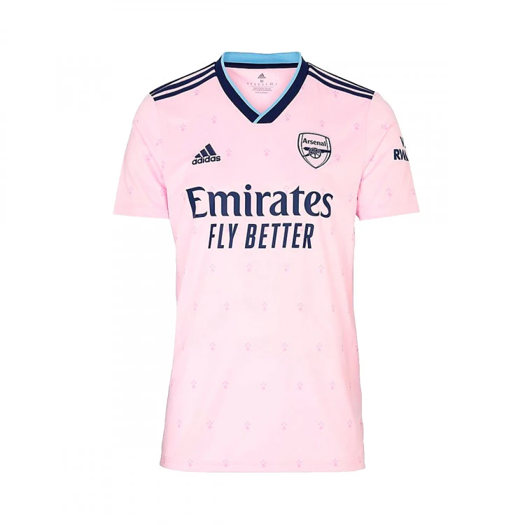 Colores vivos en esta tercer camiseta para la temporada 2022-2023 del Arsenal FC. El ADN original del club. El armiño heráldico, un detalle discreto del escudo del Arsenal de finales del siglo XX, vuelve a aparecer en esta llamativa camiseta de fútbol de adidas. Luce los tonos rosas inspirados en el escudo del Royal Arsenal Gatehouse de Woolwich, el lugar de nacimiento del club. Creada para la hinchada, se ha confeccionado en un tejido suave con tecnología transpirable AEROREADY que mantiene la piel fresca y seca.