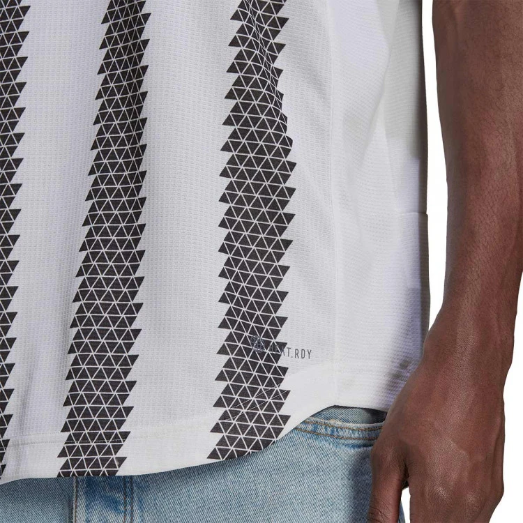 El legado triunfal de la Juventus se identifica tanto con las estrellas como con las rayas. Esta camiseta de fútbol oficial fusiona ambas cosas, con las icónicas rayas negras formadas por estrellas. La tecnología HEAT.RDY mantiene la piel fresca en el terreno de juego. Los detalles termotransferidos reducen el peso al mínimo.