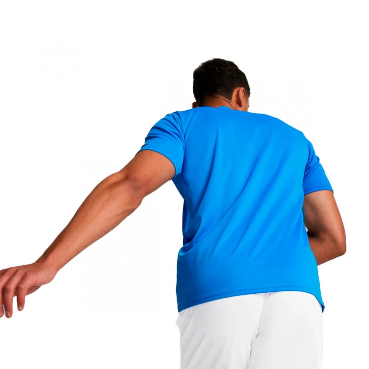 La camiseta de local de Italia 2022 celebra un legado de camisetas azules y fútbol brillante. Con acentos dorados, fuentes retro y orgullosas referencias a los triunfos de 1934, 1938, 1982 y 2006, la parte delantera de la camiseta se divide en cuadrantes tonales para honrar a las cuatro generaciones de campeones del mundo.