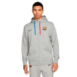 La sudadera con capucha FC Barcelona es una prenda clásica de tejido Fleece diseñada para mantener la calidez mientras animas al equipo.